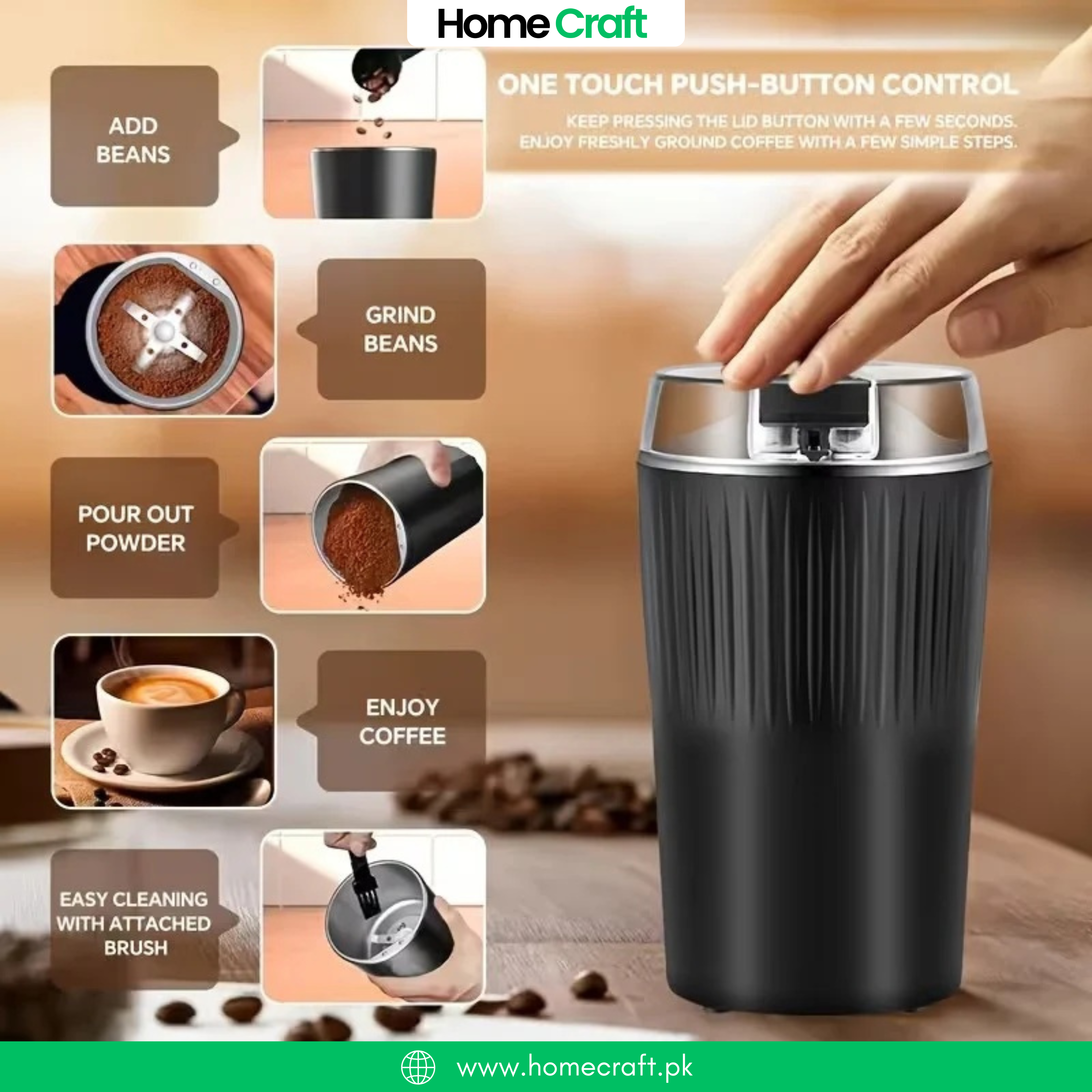 - Easy to use: fill beans in the container, start press the button, after about 10-30 seconds of release the button, then it ready.
